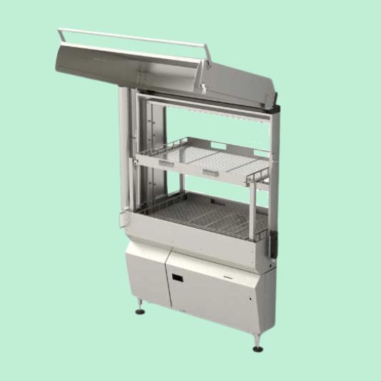 | Wash system | moving wash frame with stainless steel nozzles on 4 sides |